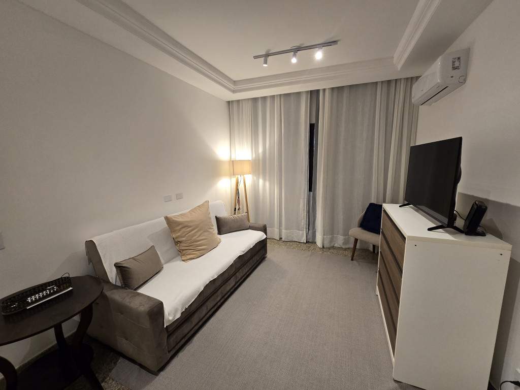 O apartamento conta com móveis e eletrodomésticos completos, pensado para quem não quer perder tempo com reformas ou compras. Sala aconchegante, com ar-condicionado para os dias mais quentes, ideal para relaxar após o trabalho ou receber amigos com conforto. No quarto, o ar-condicionado garante noites tranquilas e um descanso revigorante, seja no verão ou no inverno.
